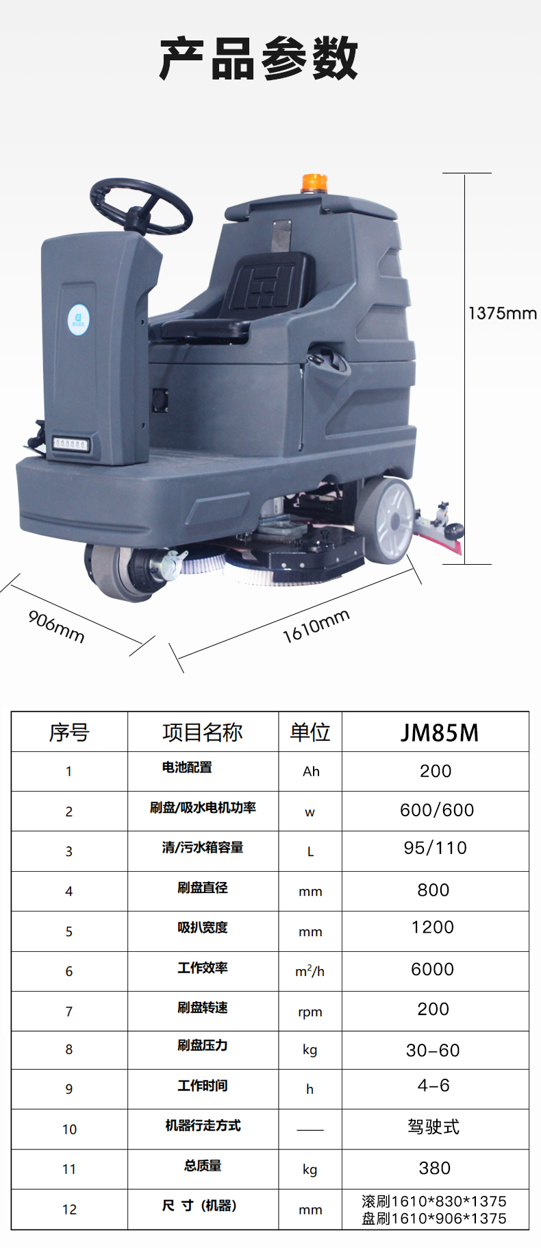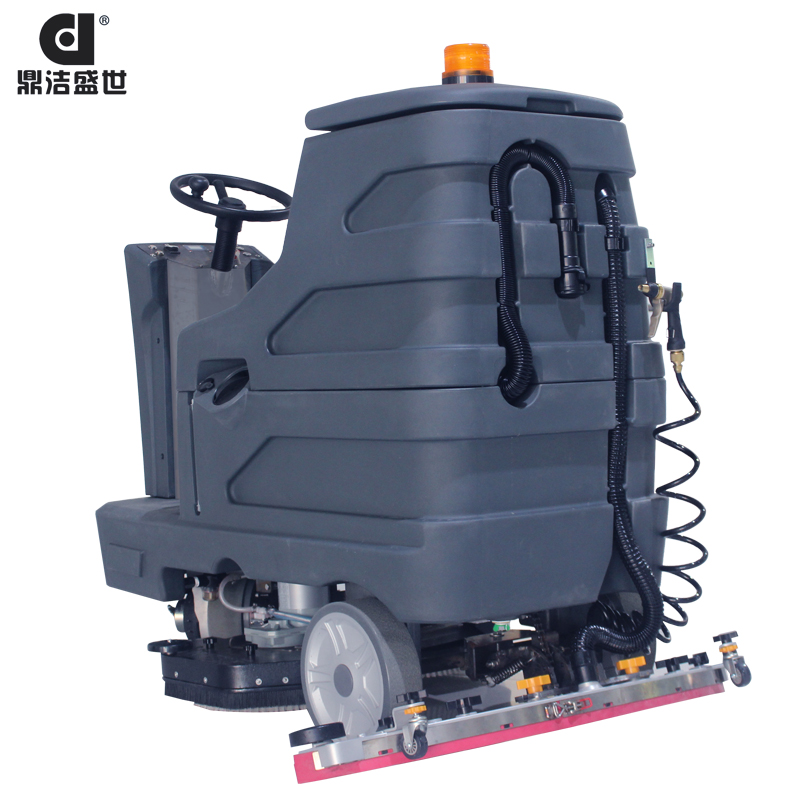 駕駛式洗地機怎么選擇?1 清潔效率:優先選擇每小時清潔面積&ge;2000㎡、續航&ge;4小時的機型,如鼎潔盛世DJ530M(2700㎡ h,續航5小時)。
