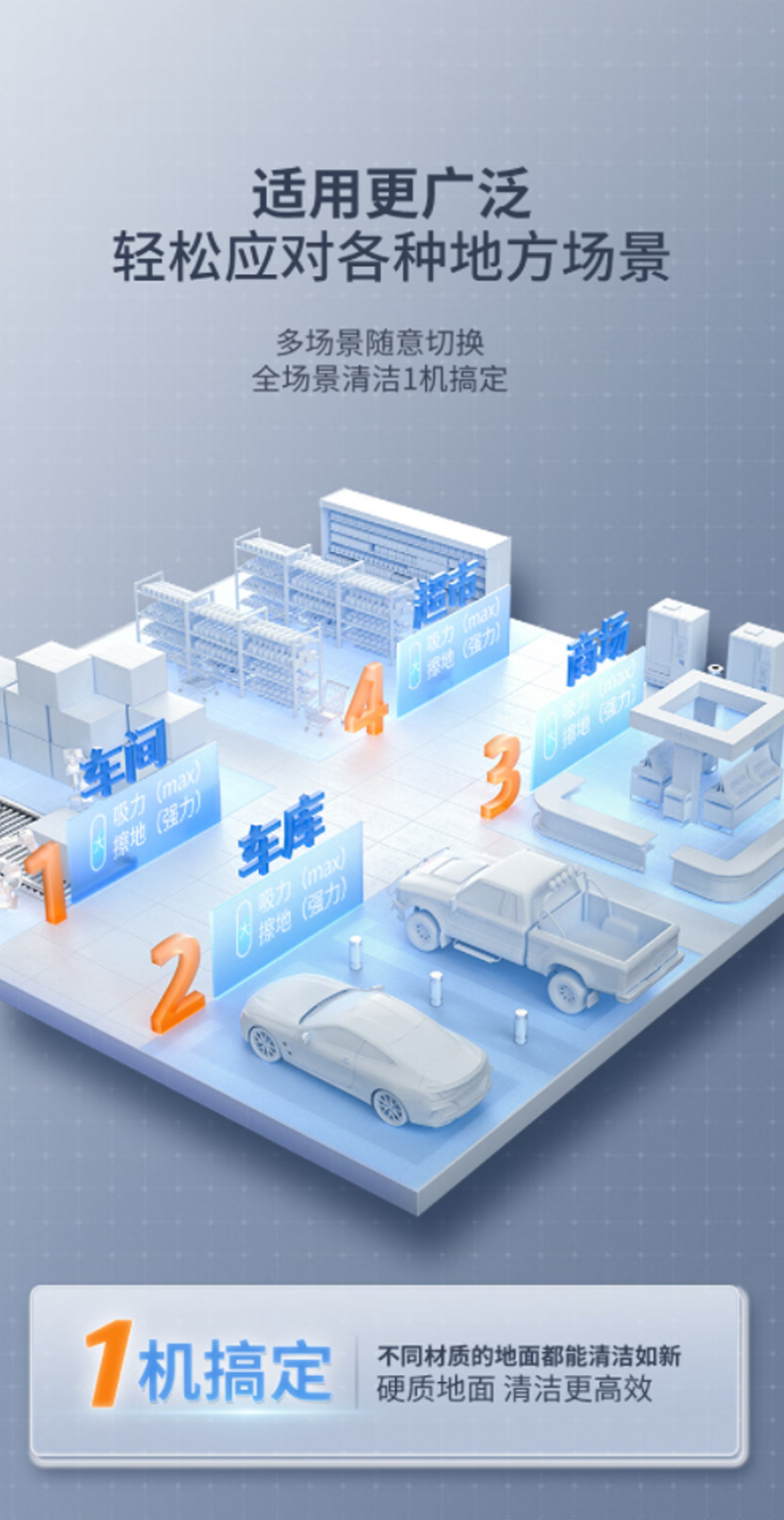 適用場所:工廠車間、廠房倉庫、商場超市、學校食堂等地面保潔