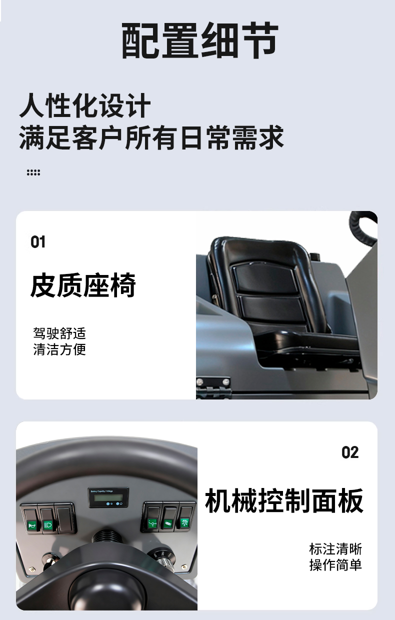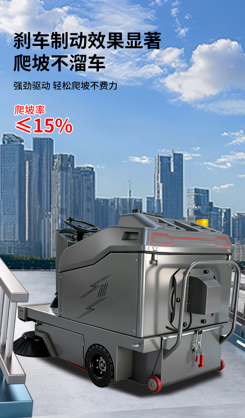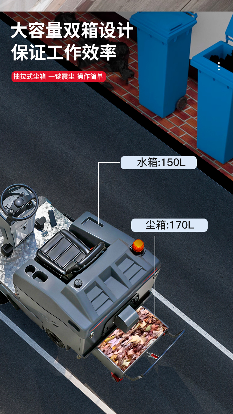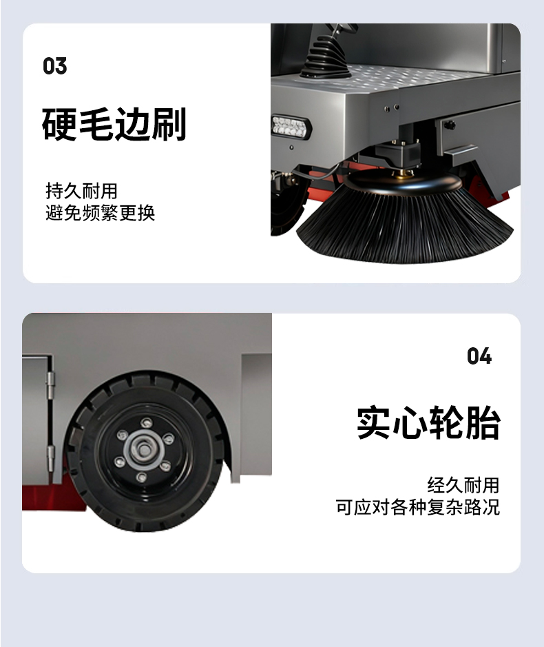 外圍場景(如工廠園區、公園、車站外圍)通常面積大(3000-10000㎡以上)、地面多為水泥 瀝青,需應對落葉、石子、粉塵等垃圾。因此,駕駛