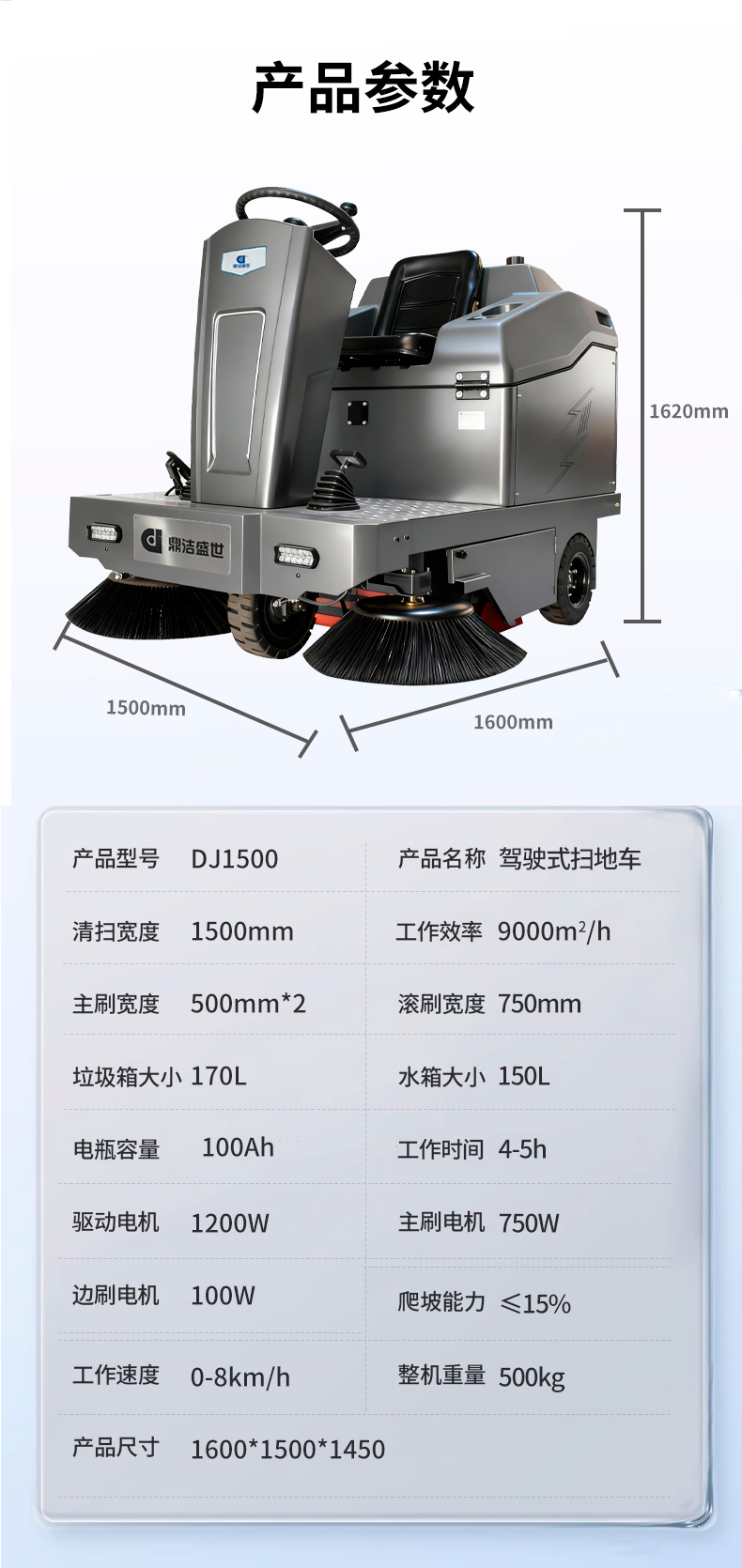 鼎潔盛世電動掃地車駕駛式掃地機DJ1500灰