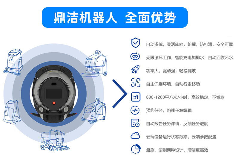 自動(dòng)充電樁、電梯聯(lián)動(dòng)、滾動(dòng)塵推及塵推自潔設(shè)計(jì)