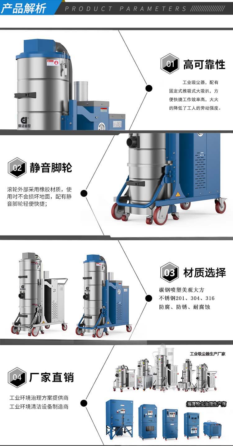 適用場所:適用于機械加工,化工車間粉塵清理,長時間工作,故障率極低,可連續工作。