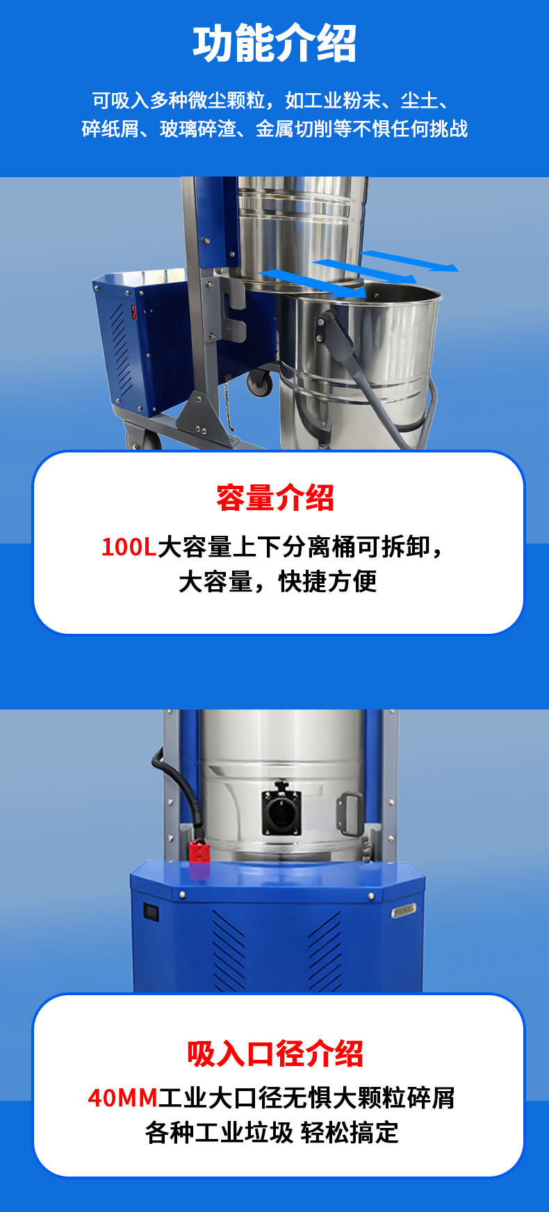 適用場所:適用于車間粉塵清理,長時間工作,故障率極低,可連續工作。