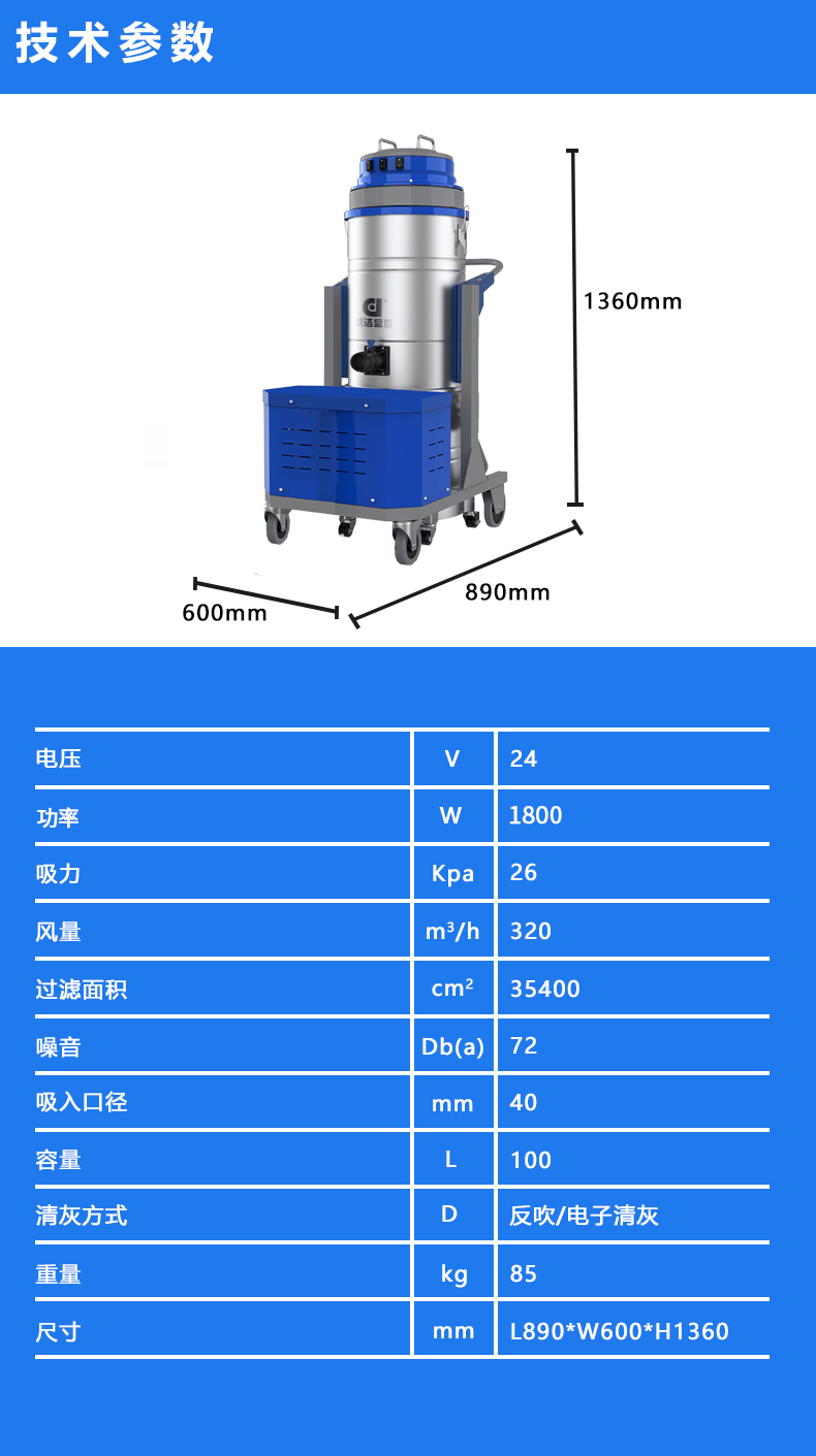 鼎潔盛世DJ-DP15100電瓶式工業吸塵器