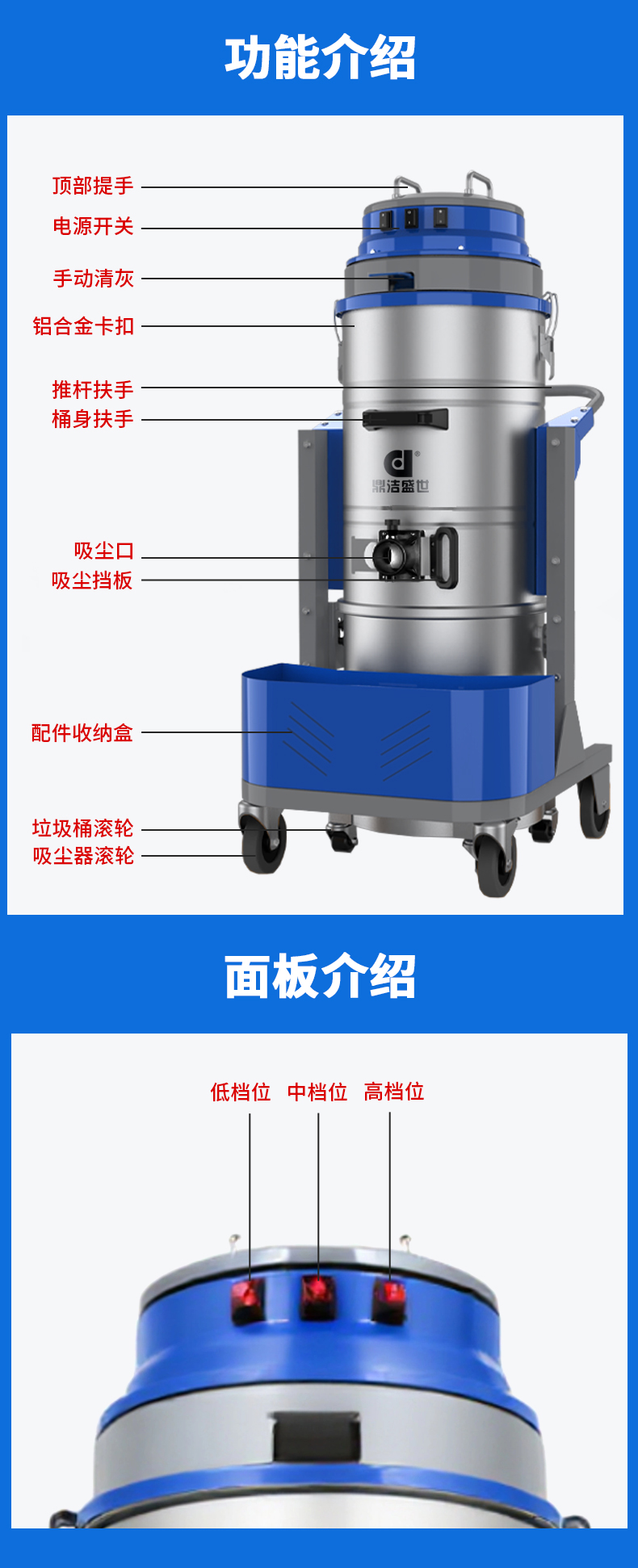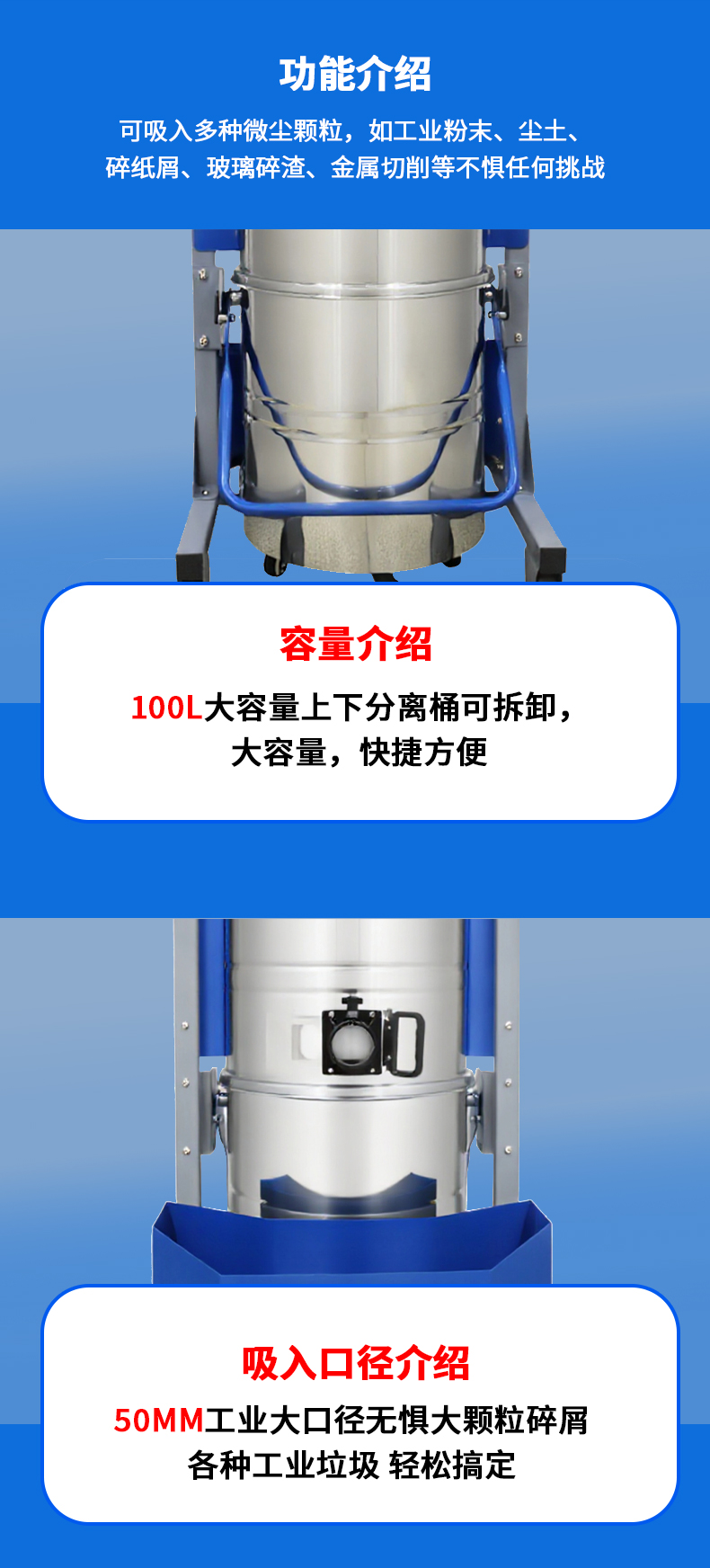 適用場所:用于工廠車間,可以吸塵、粉末、吸鐵屑、吸砂石、吸玻璃碎片、等物質